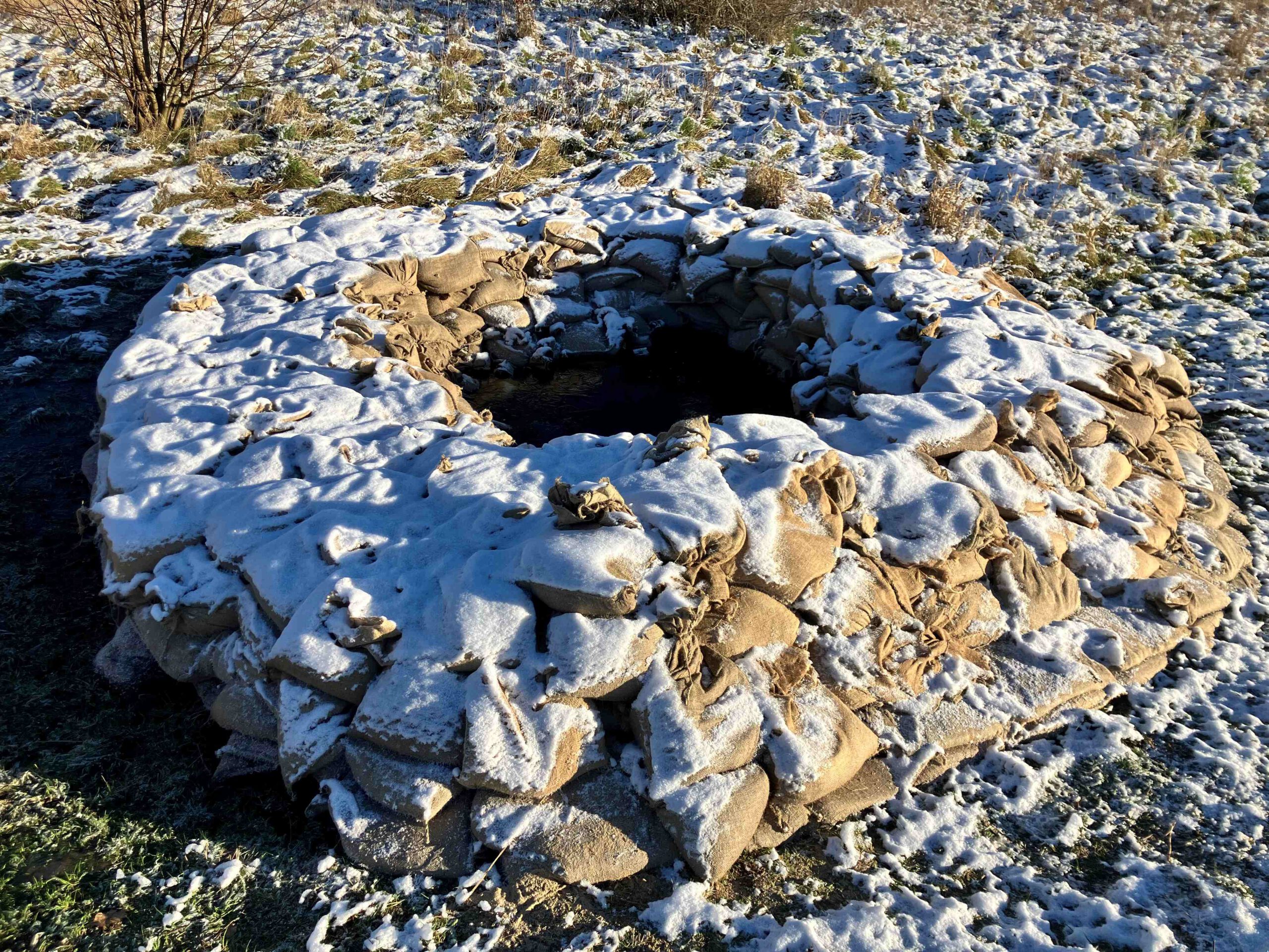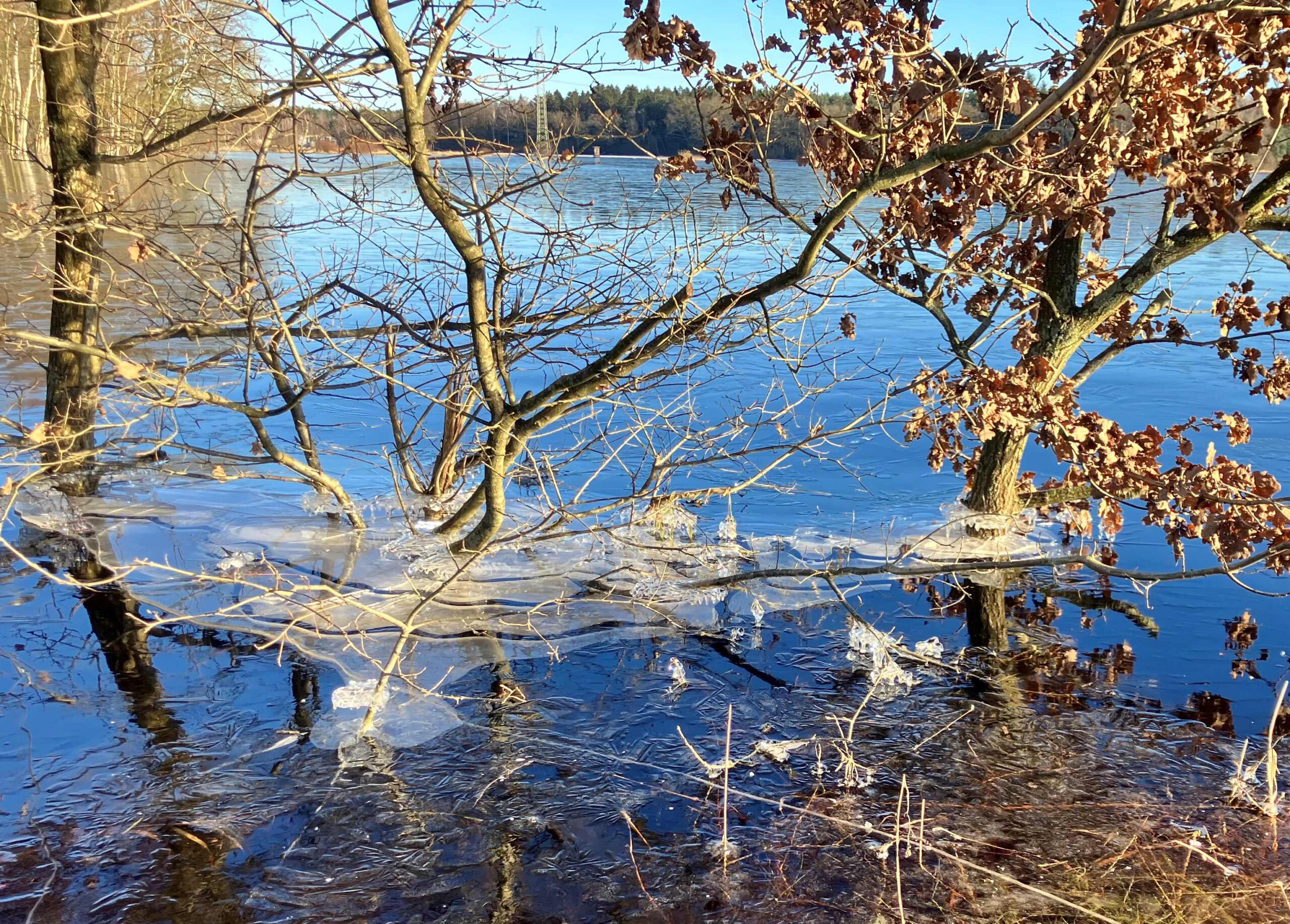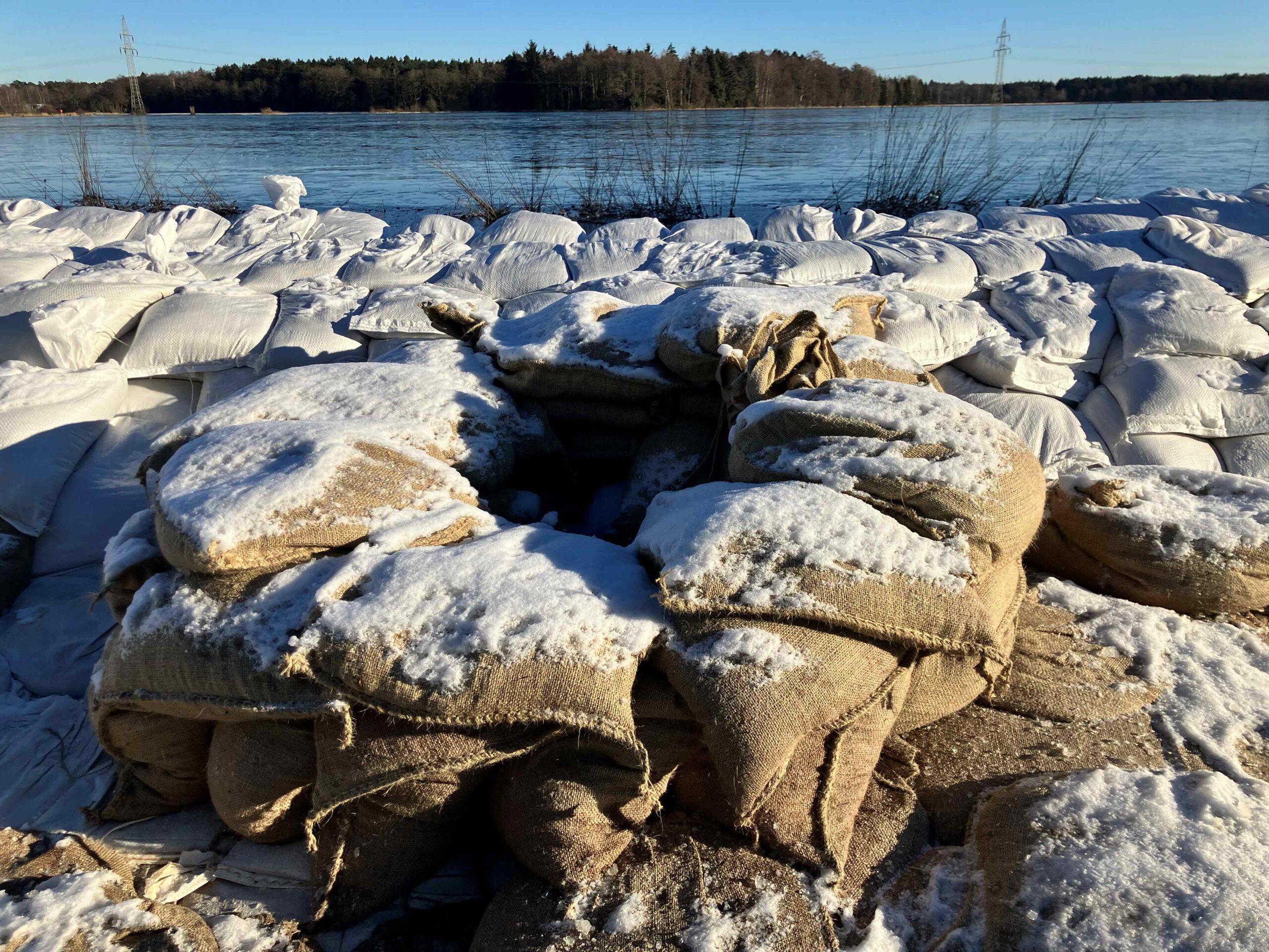 Die Binnenseite der Deiche friert schnell zu. Die Zuflüsse laufen mit weiterhin deutlich sinkendem Pegel ab. Der Wasserstand der Aller verringert sich infolge der großen Wasserfläche aber nur langsam. Rückläufig auf 4,27 m und somit 11 cm niedriger gegenüber dem Höchststand. In der Meisse leicht sinkend auf 3,60 m und 12 cm niedriger gegenüber Höchststand. Das Verringert den Druck auf die Deiche. Wir sind zuversichtlich, dieses Hochwasser bald hinter uns zu haben.