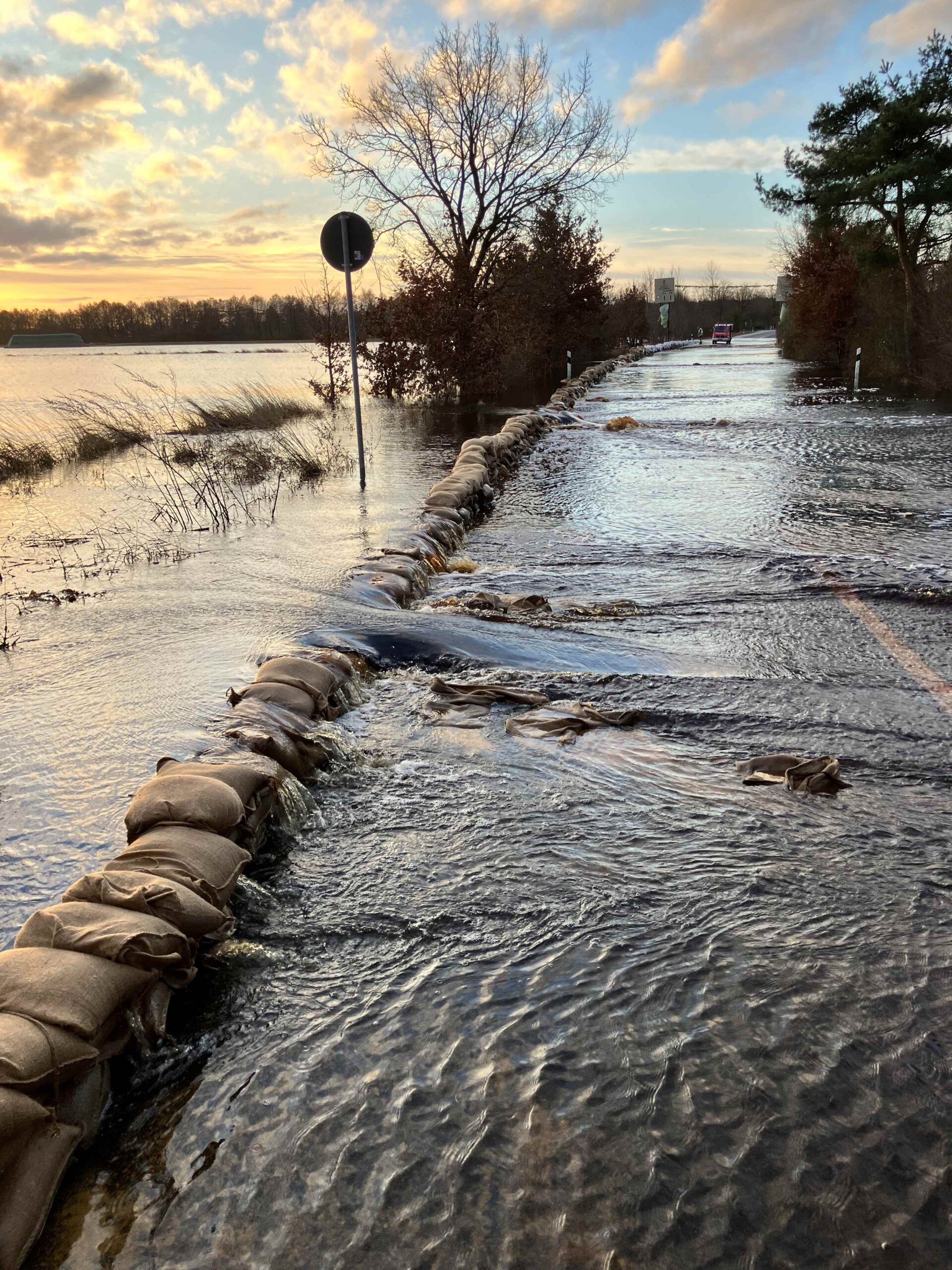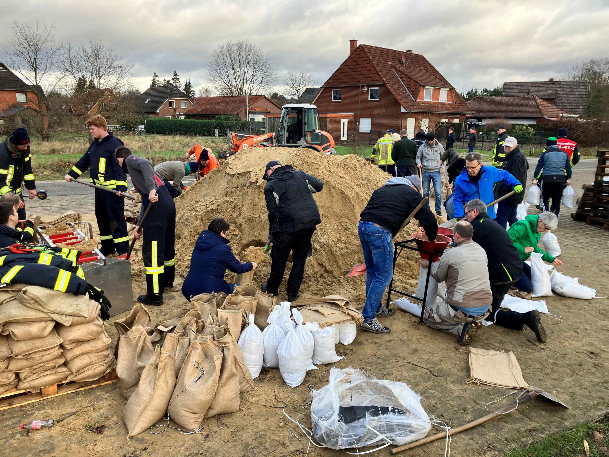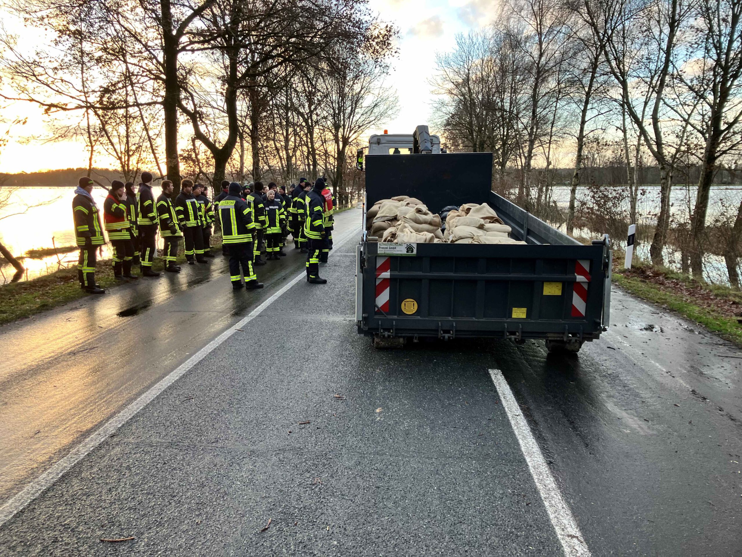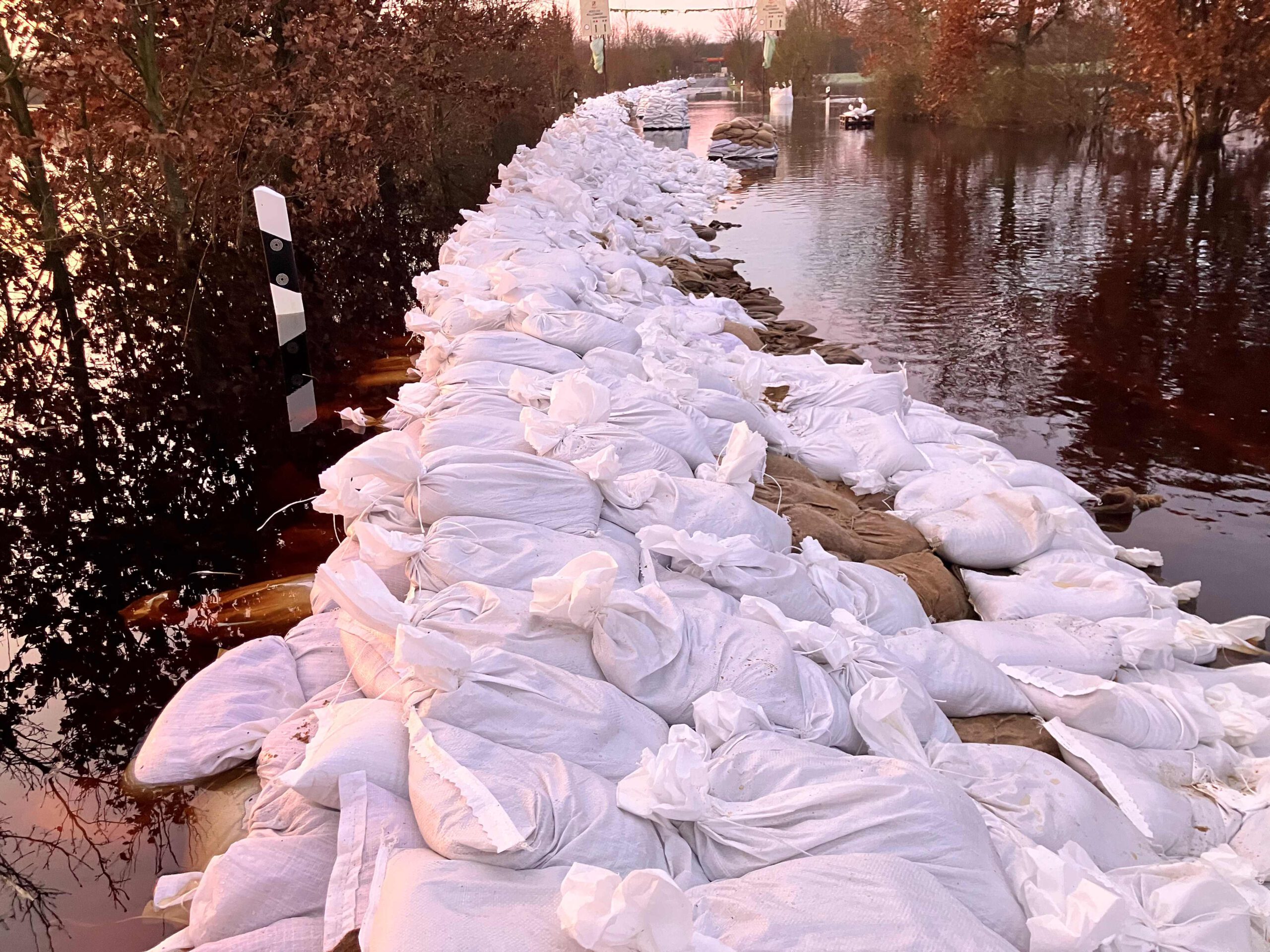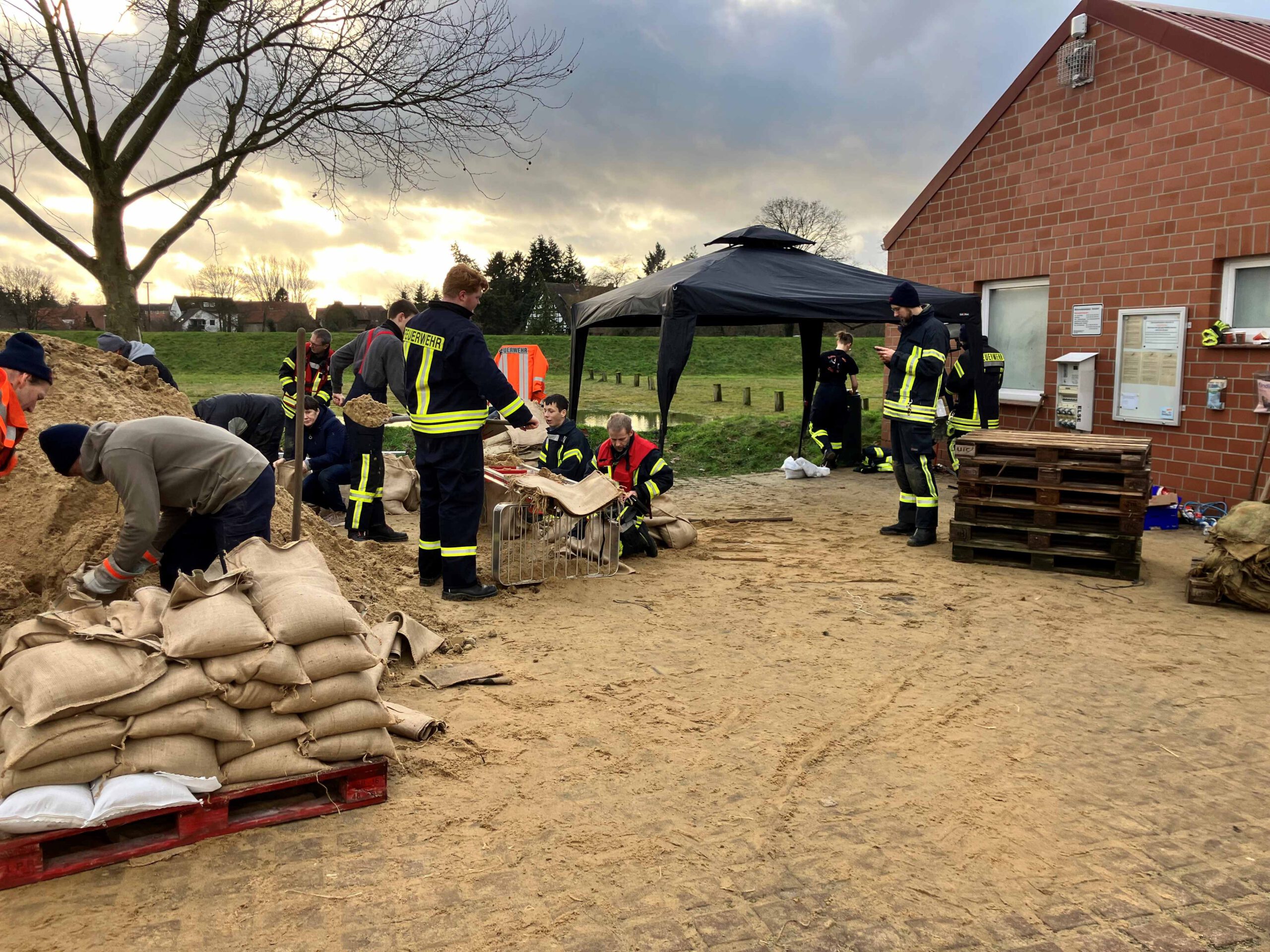 Hochwasser in Hodenhagen 2023 – Einsatzkräfte, Freiwillige beim Befüllen von Sandsäcken und einige Eindrücke von der Lage im Ort und an der Serengetiparkstraße.